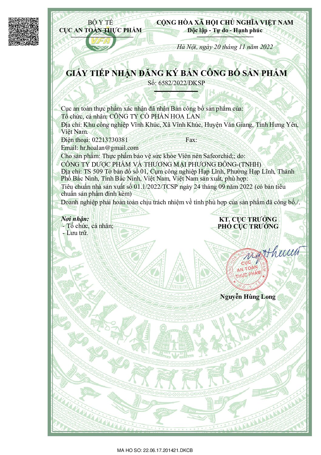 Số: 6582/2022/ĐKSP